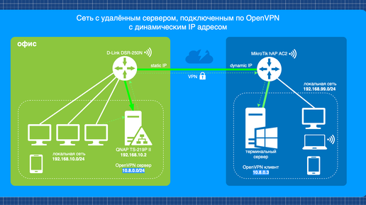 Ещё совсем недавно, работать на северах в облаке считалось чем-то экстраординарным. Однако, в плане безопасности, всё стремительно поменялось и теперь выносить физические сервера в облака стало жизненно важной необходимостью. Полагаю, догадываетесь по какой причине. Сегодня расскажу об одной интересной и практически бесплатной схеме построения такого облака на базе сетевого накопителя QNAP для удаленного доступа к терминальному серверу. QNAP у нас будет выступать в качестве OpenVPN сервера, а терминальный сервер будет подключаться к нему в качестве клиента...