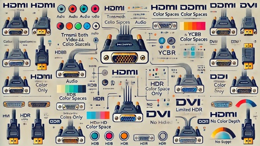 HDMI (High-Definition Multimedia Interface) и DVI (Digital Visual Interface) — это два популярных интерфейса для передачи видео, часто используемых в домашних кинотеатрах, компьютерах и профессиональных системах. Оба стандарта были разработаны для передачи цифрового видео, но имеют некоторые важные различия в области функциональности, качества передачи и поддерживаемых возможностей. Рассмотрим подробнее основные различия между HDMI и DVI: 1. Цифровой и аналоговый сигналы DVI: Поддерживает как цифровые, так и аналоговые сигналы...