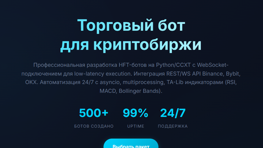 Например: Это и есть логика торговли — мозг твоего бота. Самый популярный — Python, потому что: pip install python-binance Пример самого простого бота (покупает, если цена упала ниже 60 000, и продаёт, если выросла выше 65 000): from binance...