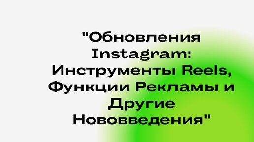 "Обновления Instagram: Инструменты Reels, Функции Рекламы и Другие Нововведения"