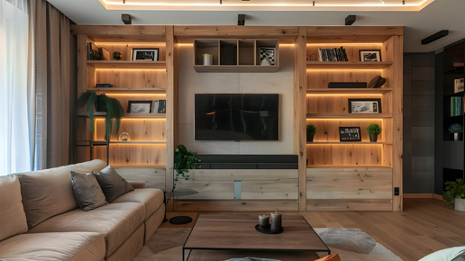 По количеству запросов в интернете оформление стены с телевизором давно и успешно конкурирует с традиционным камином. Современные любители качественного досуга хотят видеть большой экран на главном месте, с идеальным углом обзора и максимальным комфортом. При этом из года в год растут запросы на использование экологичных и добротных материалов, которые прослужат годами. А что с каминами, спросите вы? Они теперь часто уходят на второй план: чуть ниже или вообще на боковую стену, освобождая центральное место для настоящей звезды гостиной...