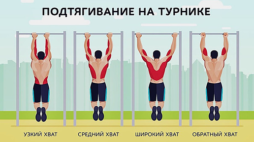 Что качают подтягивания разным хватом?