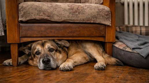 Пёс перестал помещаться под креслом, но продолжал пытаться. Некоторые привычки стареют позже тела