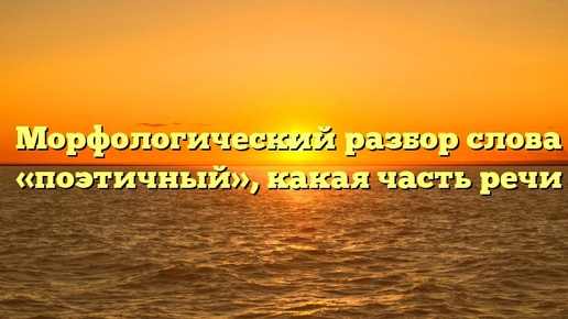 Морфологический разбор слова «поэтичный», какая часть речи Морфологический разбор слова «поэтичный», какая часть речи Поэтичный — это прилагательное, которое обозначает что-то, связанное с поэзией или присущее ей. Например, поэтичная манера изложения, поэтичный стиль. Для того, чтобы провести морфологический разбор данного слова, необходимо выделить корень и суффиксы. В случае с «поэтичным» корнем будет служить слово «поэт», а суффиксом — «-ичн-» и окончанием «-ый». Поэт — это существительное, которое обозначает человека, занимающегося творчеством в области поэзии...