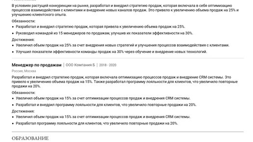 Приступая к поиску новой позиции, важно иметь сильное резюме. Изучение готового примера резюме директора по продажам поможет создать именно такое, чтобы получить работу мечты ✨. Здесь вы найдете не просто готовые примеры резюме директора по продажам для разных уровней опыта, но и получите пошаговые инструкции по созданию каждого раздела. Мы подробно разбираем: Учитывайте актуальные требования работодателей и научитесь адаптировать свое резюме под конкретные вакансии, чтобы оно было максимально эффективное резюме как для начинающих, так и для опытных специалистов...