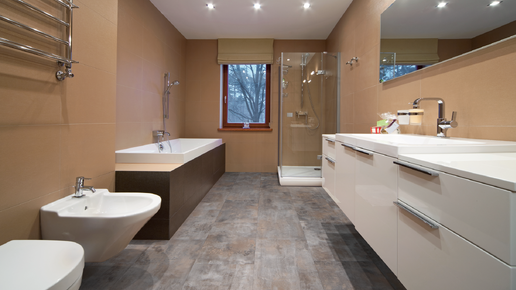 При выборе напольного покрытия ванная комната считается, пожалуй, одним из самых сложных участков квартиры. Ведь приходится учитывать не только резкие перепады температуры и повышенную влажность: материал должен быть также безопасным и иметь эстетически привлекательный вид. Рассмотрим, на что следует ориентироваться при выборе напольного покрытия, а также ключевые особенности различных материалов. Чтобы напольное покрытие служило как можно дольше и не доставляло неудобств, необходимо учитывать следующие требования: 1...