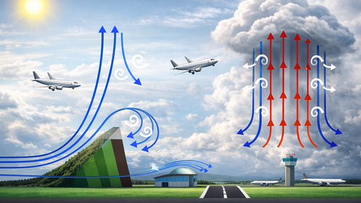 Почти у каждого был этот момент: самолёт летит ровно, и вдруг его как будто толкнули снизу. Потом ещё раз. Кресло дрожит, стакан на столике подпрыгивает, а в голове одна мысль: мы падаем. Хорошая новость: чаще всего самолёт не падает. Он летит по воздуху, который стал неровным, как дорога с ямами. Турбулентность — это и есть эти «ямы», только в воздухе. Воздух не всегда течёт ровно. Иногда он идёт слоями в разные стороны, иногда поднимается вверх, иногда резко опускается. Получаются вихри и волны...