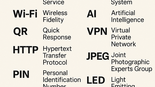 Сообщения приходят через SMS , интернет тянешь с Wi-Fi , сканируешь QR-код , чтобы оплатить кофе, подключаешься через VPN , чтобы зайти в запрещённый сайт, и видишь, что кто-то упомянул тебя как VIP . Но при этом ты не знаешь, что всё это не просто набор букв , а полноценные английские фразы, которые пришли к нам из мира технологий и маркетинга. SMS — это не просто «сообщение». Это целая система связи , которая стала родной для поколения, которое выросло на кнопочных телефонах. Расшифровка: .S hort...