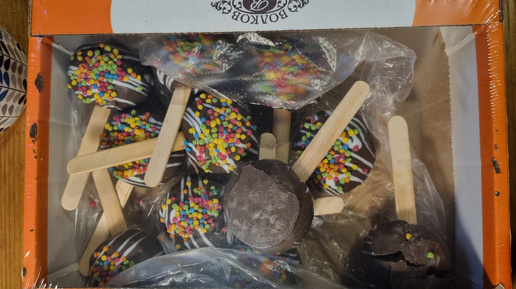 На днях в магазине прикупил печенюх, вот такую вот коробочку: Что-то шоколадное под названием "Княжевика-РИО", в глазури да еще и зачем-то на палочках. 268р за 0.5кг - вроде нормально по нынешним временам. Рассматривая упаковку, увидел это не просто "Княжевика-Рио" от кондитерского предприятия "Волков", но еще и "кейк-попс". За разъяснениями лезем в интернет: Кейк-поп (cake pop, от cake lollipop — пирожное-леденец) — один из видов кондитерских изделий северо-американской кулинарной традиции XXI века;...