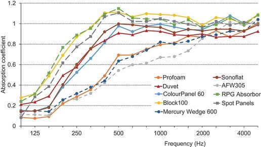 Попалось потрясающее по своей содержательности исследование, ангажированное продавцами упаковочного поролона по тройной цене. Ссылка: https://www.soundonsound.com/reviews/choosing-using-porous-absorbers Читать это надо с изрядной долей критики, потому что там в конце даже есть целый эпос на 4 абзаца на тему "как же работает поролон". Сейчас я открою вам страшную тайну производителей поролона, и в подтверждение своих слов приведу график из оплаченного ими исследования. Так вот, поролон — это...