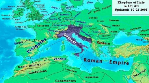 М.а. - Мнение автора К середине V века Западная Римская империя и её ценности переживали сильный упадок. В 476 году произошло замещение власти последнего романского императора Ромула, заменённого Одоакром. Средневековая Италия Сразу после развала Западной Римской империи. Королевство Одоакра В 476 году Одоакр сверг римского императора Ромула Августа и объявил себя Rex Italiae (Царь Италии)...