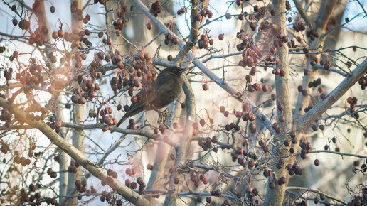 А в моём списке новая птица — чёрный дрозд. Совершенно случайно увидела его по дороге из магазина домой, сидел в палисаднике в зарослях боярышника. И совершенно случайно я не выложила из рюкзака после поездки на дачу фотоаппарат). Очень торопилась, прицелиться как следует не удалось, поэтому снимок смазанный. Но он есть! Дрозда спугнул сорочий стрёкот. Эти трещотки живут у нас в квартале повсюду, а особенно любят территорию музыкальной школы и крыши близлежащих домов. Устраивают там собрания, концерты и прочие шумные мероприятия...
