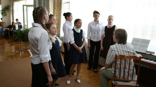 Работать с хором или вокальным ансамблем. А что значит – работать с хором. Прежде всего найти подходящее произведение. Оно должно подходить по многим параметрам Выбрали. Далее надо самому выучить эту песню. Прослушать или проиграть, выучить мелодию всех голосов, суметь их сыграть и пропеть. Прямо как на уроке дирижирования – выучи, сыграй, спой, аннотацию напиши. А как иначе? Ну, с той разницей, что аннотации я не пишу. Только после того, как хормейстер сам выучил песню (или хорошо в ней разобрался), можно давать детям...