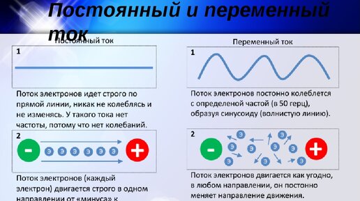 Постоянный ток (ПТ) и переменный ток (ВТ) являются двумя основными типами электрического тока, которые широко применяются в нашей повседневной жизни и в промышленных целях. Постоянный ток является электрическим током постоянного направления, при котором электроны движутся по цепи в одном направлении с постоянной скоростью. Постоянный ток обычно используется в батареях, аккумуляторах и источниках постоянного тока. Он также применяется в электронных устройствах, таких как компьютеры, телевизоры и мобильные телефоны, где необходима стабильная постоянная энергия...