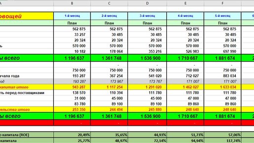 Окончание. Начало здесь и здесь. Лист «Возвраты» На этом листе определяем количество возвратной продукции от покупателей. В первой таблице устанавливаем процент возврата от каждого продаваемого продукта. Ячейки, куда данные вносятся вручную как обычно выделены оранжевым цветом. Данные вносятся в столбец В и дублируются помесячно на весь проект. Процент возврата можно поменять в любом месяце вручную. Как уже описывалось ранее, просто написать процент возврата поверх ссылки. Вторая таблица — «Количество...