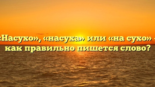 «Насухо», «насуха» или «на сухо» — как правильно пишется слово? Сомневаетесь в написании лексемы – «насухо», «насуха» или «на сухо»? На конце этого слова пишется буква «о» или «а»? Правильным считается слитный или раздельный вариант написания? Определим морфологическую принадлежность языковой единицы и вспомним простое правило. Как пишется правильно: «насухо», «насуха» или «на сухо»? Единственный нормативный вариант написания лексической единицы – «насухо». Какое правило применяется? «Насухо» – это наречие, которое употребляется в значении «до полной сухости»...
