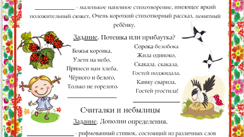 Знатоки фольклорных жанров. Потешки и прибатуки