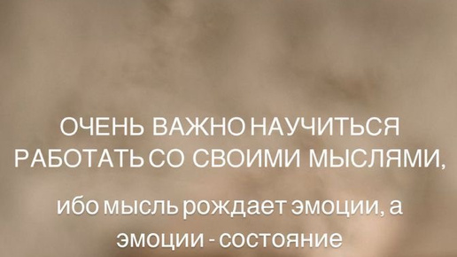 Очень важно научиться работать со своими мыслями. Потому что мысль рождает эмоции, а эмоции - состояние