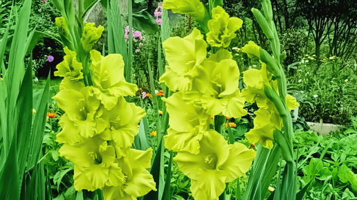 -- Почему зелёный? -- Потому что гладиолус тоже бывает зелёным. Этот цветок с листьями, похожими на меч, по праву считается самым мужским. И конечно же, больше всего распространен гладиолус красного цвета, для мужчин красный -- самый подходящий - цвет ярости благородной. Белые с голубоватым отливом, жёлтые, розовые, фиолетовые и цвета спелой вишни, есть даже разноцветно-петушиной окраски -- всё это есть и в немалых количествах. А вот зелёный -- большая редкость -- мой любимый. Любимый цветок и любимый цвет...