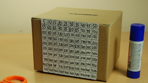 Привет! Сейчас я покажу и расскажу тебе, как сделать очень простую и интересную копилку. Интересна она тем, что помогает накопить большую сумму без особых усилий. При этом ты всегда сможешь прикинуть, сколько в ней находится денег. Нам понадобится: Ход работы 1. Чертим квадрат 10*10 см. вырезаем его. 2.Расчерчиваем лист. Площадь одной клетки 1*1 см. 3. Расставляем числа начиная с 5, затем прибавляем к следующему 5 и так далее. 4. Разбираем коробку. Именно разбираем, не разрезаем! Это очень важно...