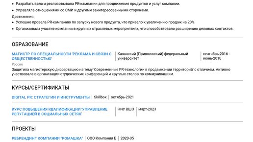 Пример резюме PR директора 2025 - Как составить