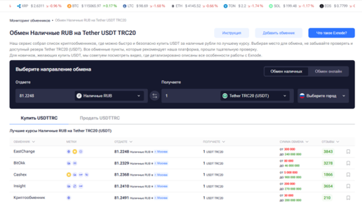 Где купить USDT за рубли — этот вопрос сегодня задают себе многие, кто хочет быстро и безопасно войти в мир криптовалют. Поиск надежного варианта среди сотен предложений может превратиться в настоящий квест, где на кону стоят не только деньги, но и нервы. Чтобы не попасть впросак, важно проверять каждую площадку. Для этого существует такой ресурс, как Exnode: здесь любой пользователь может изучить реальные отзывы о криптообменниках и составить объективное мнение перед совершением сделки. Это серьезно снижает риски и помогает отсеять мошенников...