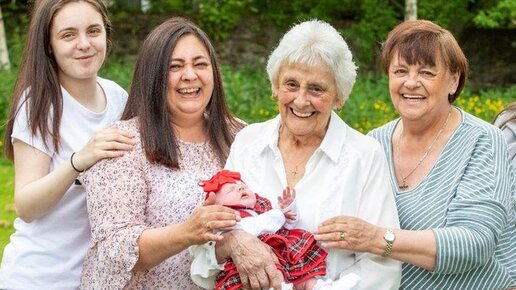 Прабабушка – это, согласитесь, уже звучит гордо. Прапрабабушка – вообще высший пилотаж, а прапрапрабабушка – это что-то из области научной фантастики. Однако спешим развеять мифы: бывает и такое! 86-летняя Мэри Маршалл из Эдинбурга воспитала 8 детей, 90 внуков, правнуков и праправнуков. BBC рассказывает о том, что три недели назад у женщины появилась прапраправнучка, чему она, конечно же, безмерно рада...