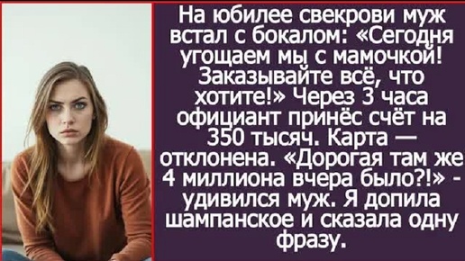 «Дорогая, а где твои 4 миллиона?» Удивился муж, когда не смог расплатиться картой за юбилей свекрови...