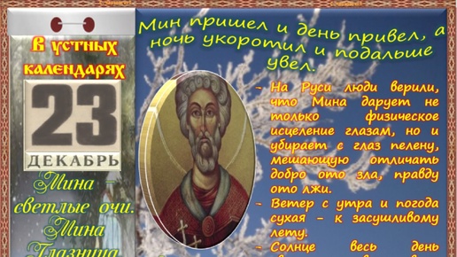 23 декабря - Приметы, обычаи и ритуалы, традиции и поверья дня. Все праздники дня во всех календарях.
