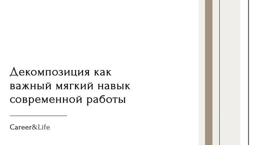Представьте, что вам поручили построить дом. С чего начать? Паниковать от масштаба задачи? Или просто начать класть кирпичи? Скорее всего, ни то, ни другое. Вы разобьёте большую цель «построить дом» на этапы: фундамент, стены, крыша, коммуникации, отделка. А каждый этап — на ещё более мелкие задачи: залить бетон, положить кирпич, смонтировать окно. Поздравляю, вы только что применили декомпозицию! Декомпозиция — это не про строительство. Это фундаментальный мягкий навык, который превращает любую сложную, пугающую или абстрактную задачу в управляемый набор простых шагов...