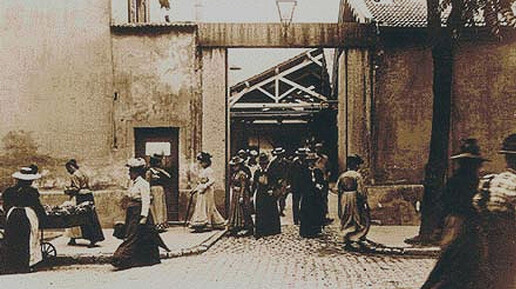 виде образа, а третье... О нём чуть позже. Итак, первое место - там, где Вы сейчас находитесь, читаете этот текст и видите кадр. Второе место Вы видите сейчас на кадре. Ворота завода братьев Люмьер, расположенного в французском городе Лион. Именно здесь 22 марта 1895 года вышеупомянутые родственники сняли выход рабочих. А третье место Вы можете себе представить...