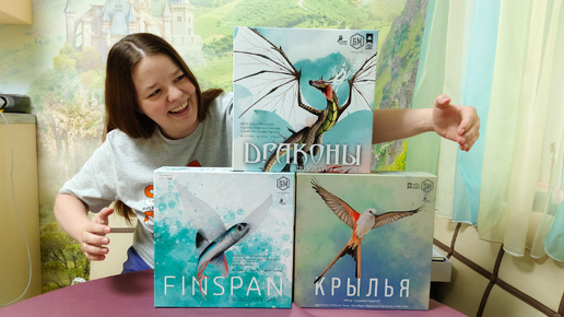 Эта статья в видео формате — ютуб, ВК. Запустили предзаказ на Драконов («Дрылья» в простонародье, потому что это аналог Крыльев в другой тематике). А ведь есть ещё третья игра, про рыб — Finspan. И что же выбрать? Я играла во все 3 игры, поэтому расскажу о них в сравнении друг с другом. Правила не буду пересказывать, чисто плюсы и минусы, и в каком приоритете они стоят у меня. Механики похожи — у нас есть 3 ряда / колонки, в которые мы разыгрываем карты. И ты или играешь карточку, или активируешь ряд, чтобы получить его плюшки...