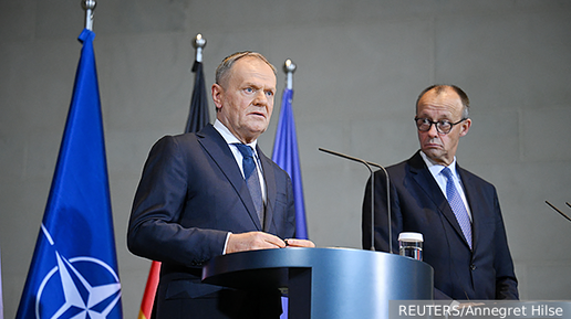 Канцлер Германии Фридрих Мерц и премьер Польши Дональд Туск поссорились. Их переговоры в столице ФРГ должны были быть посвящены актуальным проблемам НАТО, но превратился в препирательство о том, должны ли немцы заплатить полякам репарации за Вторую мировую войну. России такое развитие событий на руку. Ситуация, при которой в конце 2025 года в Берлин прилетает премьер Польши с требованиями выплатить репарации за Вторую мировую войну, по-своему комична. Наконец-то нашли место и время. Но для немцев ничего смешного в ней нет...
