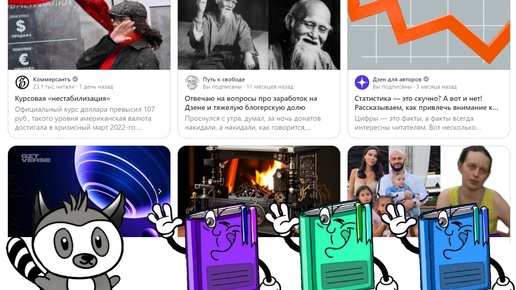 Превью – это миниатюрная обложка публикации в ленте или на главной странице канала. В буквальном переводе с английского означает «предварительный просмотр». Предназначена для быстрого знакомства читателя с материалом. В Дзене превью называется карточкой публикации. Карточки статей из Дзена можно встретить на главной странице Яндекса и на сайтах-партнёрах. Но легче всего увидеть превью прямо в ленте рекомендаций – она вся состоит из них. Это внешний вид ленты в старом дизайне. Не удаляю, потому...