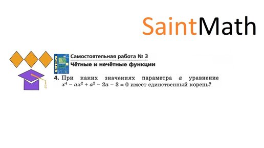 Алгебра 9 класс. Углубленный уровень. Мерзляк. Самостоятельная работа 3. Вариант 1. Задание 4. ЧЕТНЫЕ И НЕЧЕТНЫЕ ФУНКЦИИ. 3. При каких значениях параметра а уравнение х^4-ax^2+a^2-2a-3=0 имеет единственный...