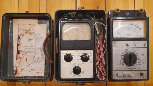 В коллекции Электромузея две цешки. Первый прибор Ц56/1, сделан на Житомирском заводе электроизмерительных приборов в 1966 году. Сохранился паспорт и электрическая схема прибора. Три переключателя измерений, четыре клеммы, пять гнёзд для щупов и регулировка нулевого положения стрелки сбоку не самое лучшее решение, но шестьдесят лет назад было так...