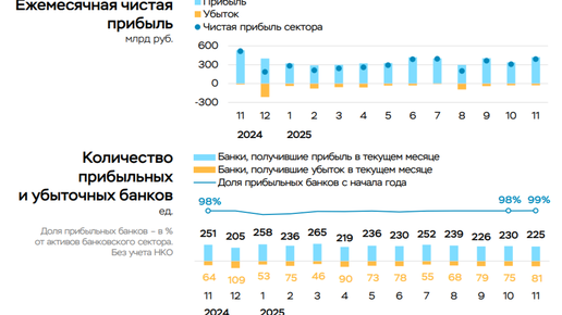 Чистая прибыль банковского сектора в ноябре 2025 г. — увеличилась благодаря налоговым манёврам и переоценке ценных бумаг. Снижение ключа рас