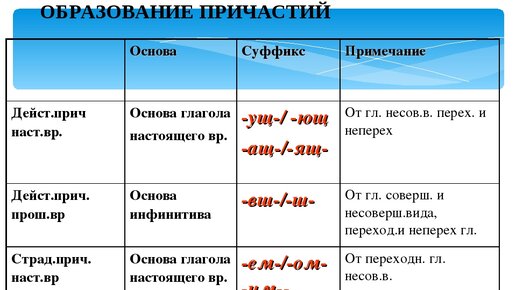 Причастие как часть речи