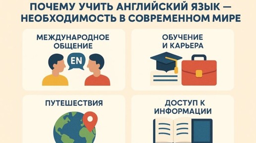 Английский открывает доступ к лучшей работе и доходу, мировому образованию и научным знаниям, свободным путешествиям, культурным оригиналам и серьёзной прокачке мозга. Это рабочий язык интернета, технологий и международного общения. Освоение сегодня — инвестиция в карьеру, безопасность в поездках, нетворкинг и личностный рост. Короче, если вы всё ещё думаете, нужен ли вам английский — дочитайте до конца, и сами поймёте. Английский язык сегодня — базовый навык. Учить и знать его важно и нужно, потому что это язык технологий, науки и международного общения...