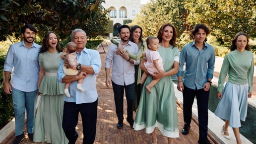Поздравительная открытка этого года от иорданской королевской семьи с двумя новейшими членами семьи: принцессой Иман Бинт Хусейн и малышкой Аминой. Вот это и правда дружная семья! И король, и королева, собрали своих вместе и дружно поздравили иорданцев!Обратите внимание, как подобранынаряды по оттенкам, показано даже втаких деталях, что это и правда СемьЯ. Камилла с Чарльзом опять не у елочки, а взяли фото с апрельского визита в Италию. Гуляет по саду усадьбы Волконских, ныне посольству Великобританиив Италии...