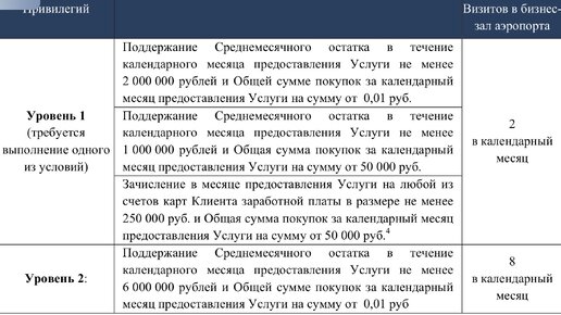 Кто часто летает, тому не секрет о возможности использования залов ожидания и возможно трансфера при обслуживании в банке. В разных банках разные тарифы и условия, в связи с собственной необходимостью рассмотрения для себя такой возможности рассмотрены наиболее распространённые банки. 1) Тinkoff Даёт: 2 прохода в месяц. Трансфера нет. Условия: Сумма покупок — от 200 000 ₽ в месяц или Общий остаток на счетах — от 3 000 000 ₽ 2) Втб привилегия Даёт: 2 посещения/мес. Среднемесячный оборот по карте от 100 000 ₽ или сумма активов в банке от 2 000 000 ₽ Даёт: 8 посещений/мес...