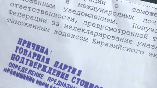 Больше 10 крупных заказов с запада в 2019 году – а я даже не подозревал, что можно столкнуться с таможней, соблюдая лимиты по весу и цене. Эта посылка стала первой "с таможенным уведомлением" После сортировки она поступила не в мое почтовое отделение, а в ближайшее к таможне. Поехал туда. Помахали морковкой перед носом показали посылку, но не выдали – вместо нее дали такое письмо-уведомление и сказали ехать с ним в таможенное отделение. Обидно, что не сказано какие документы брать с собой, в чем именно вопрос/претензия ко мне (кроме абстрактной формулировки и загадочной фразы "п...