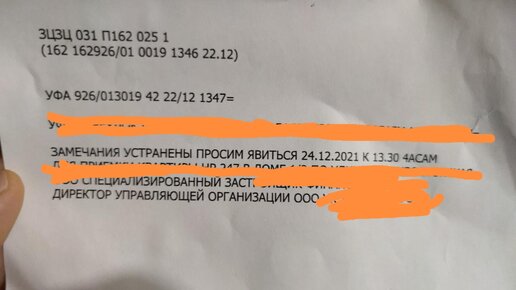 Удивлена так удивлена, нечего сказать). Приходит сегодня почтальон и говорит- вам телеграмма. Я аж сначала думала, что мне послышалось. Но нет, правда телеграмма. Принесли и вручмли прям в руки. А там - требование явиться на повторную приемку. И не абы когда, а сегодня! Ну да, я ж не работаю, жду телеграмму)) При первичной приемке не очень приятный в общении менеджер сказал, что исправят в начале февраля...
