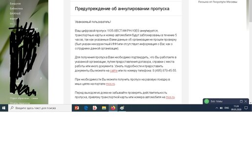 Всех приветствую на своем канале. Ранее я уже писал как я получил пропуск забив все данные сам, а через пять дней мне пришел автоматически новый пропуск. Себе на пропуск я подавал данные еще 31 марта, но автоматический пропуск пришел только 20 апреля, вместо 15 - го. Жене пропуск решил сделать гораздо позже. Зашел через ее Госуслуги на мос.ру забил инн своего работодателя и пришел сразу пропуск. После 30 апреля мы его благополучно продлили. 7 мая вечером я проверил ее пропуск по номеру автомобиля и увидел, что у нее нет разрешения на передвижения...