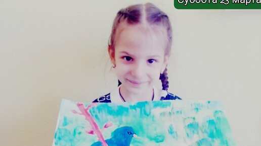 Вот такую птичку нарисовали на первом пробном уроке по рисованию в субботу 23 Марта.