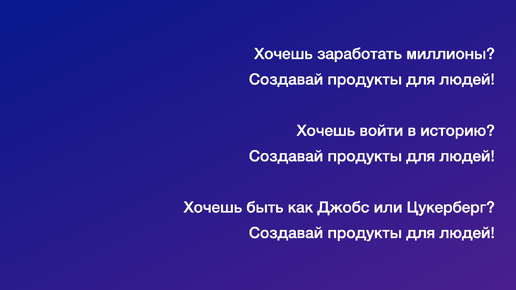 Что такое продукт в новой экономике? Не буду грузить тебя, дорогой читатель сложными терминами и англицизмами. Наша задача понять суть, а не умничать при друзьях на кухне. Продукт-это что то, что создается для человека. Да, всё очень просто. И весь смысл продукта заложен в этой фразе. Что-то: Создается …. Вернемся к этому слову чуть позже Для человека О да! Это наверное самое главное слово в этой связке. Без него не получится ничего! Вообще ничего. Любой продукт или сервис/услуга должен закрывать потребность человека...