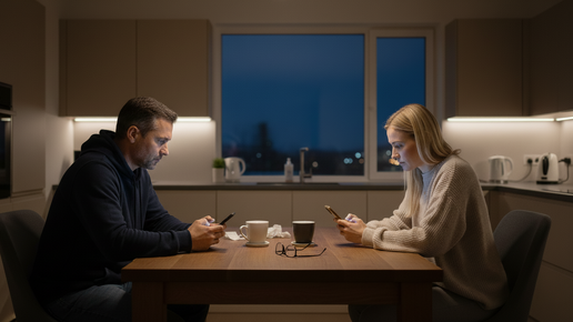 Вчера муж спросил про стиральную машину, я ответила про родительское собрание. Так прошел наш семейный ужин. И это нормально? Сижу на кухне, передо мной три тарелки с остывшим ужином. Тёма убежал доделывать домашку, Лина уткнулась в телефон, Тошка уснул прямо за столом. Сергей наливает себе чай и спрашивает: «Алён, ты оплатила интернет?» Я киваю. Молчание. Он листает новости на планшете. Я собираю посуду. Ещё пять лет назад мы могли проболтать час после ужина, обсуждая всё на свете. Сейчас наши разговоры умещаются в три темы: дети, счета, ремонт...