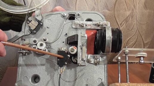 Почему-то считается, что для оцифровки 8-мм киноплёнки обязательно нужно купить и изувечить кинопроектор. Как-то я увидел в "Моделисте-конструкторе" статью о переделке "Луча" в звуковой кинопроектор и, с горяча, распилил свой "Луч 2-С8". Хорошо, завлаб с кафедры киноаппаратуры мне потом дал эти детали от списанного "Луча"... Но, большая часть функций кинопроектора для оцифровки не нужна. Объектив проектора не годится, обтюратор, с механизмом синхронизации его работы с грейферным механизмом не нужен, мощная проекционная лампа с конденсором тоже лишняя...