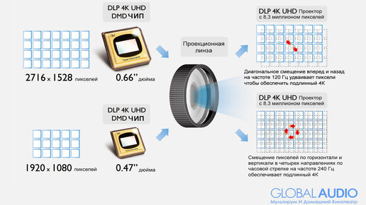 Новейшая технология сдвига пикселей привнесла  много споров и путаницы в мир 4K проекторов. Потребители обеспокоены тем, что является истинным или подлинным 4K, а что является поддельным или "искусственным". Немного истории В недалеком прошлом была огромная видимая разница в качестве изображения между проекторами SVGA и XGA, между WXGA и Full HD 1080p. При сравнении этих проекторов были очевидны различия в деталях и резкости изображения. Видимые пиксели на проекторах с более низким разрешением была в высшей степени раздражающими...