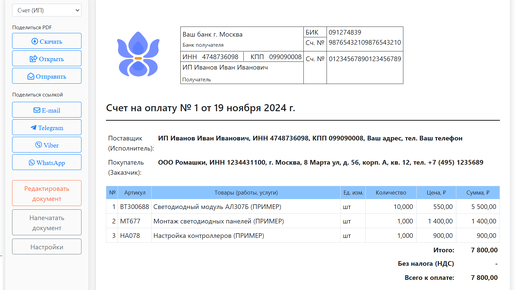 ИрисОфис: Выписка счета на оплату и акта онлайн